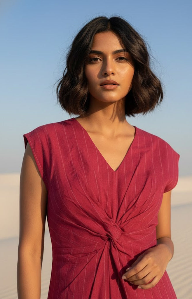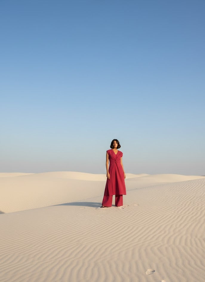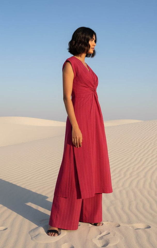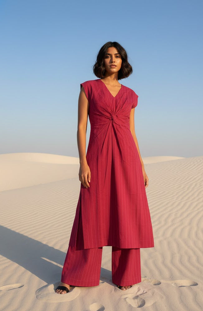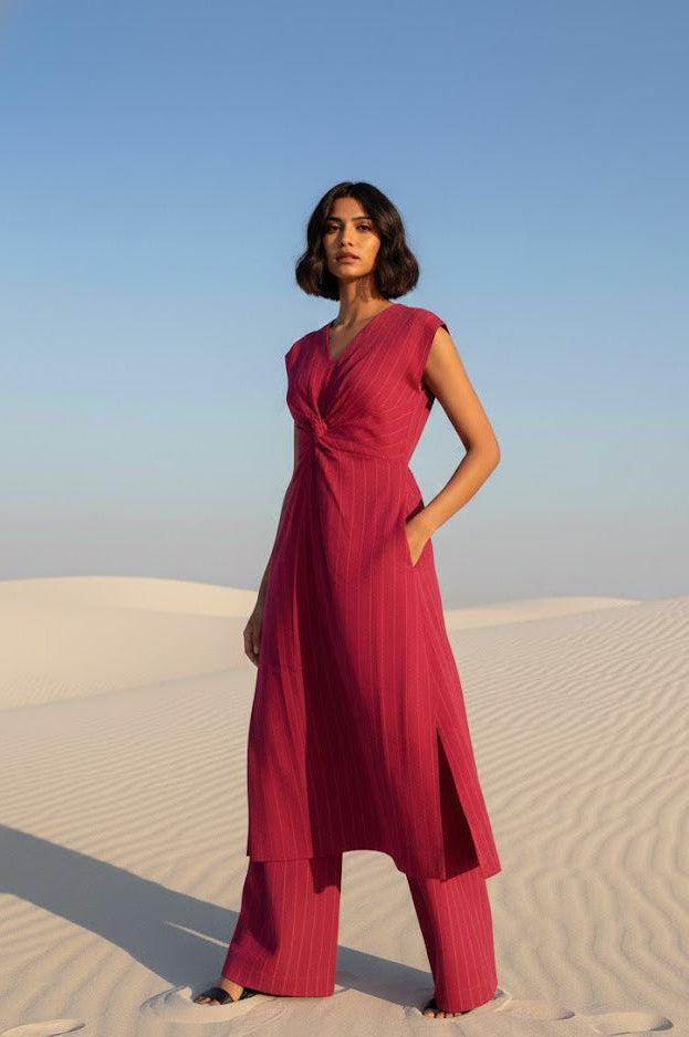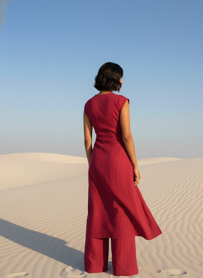 The Pinstripe Leader Coord, made of 100% linen, is designed for women who lead through presence rather than noise. Crafted for office days, boardroom discussions, client meetings, and long hours of decision-making, it offers breathable comfort and a naturally structured fall that stays composed through movement. The linen cools, softens with wear, and allows ease without compromising authority, making it ideal for Indian weather and all-day workwear.